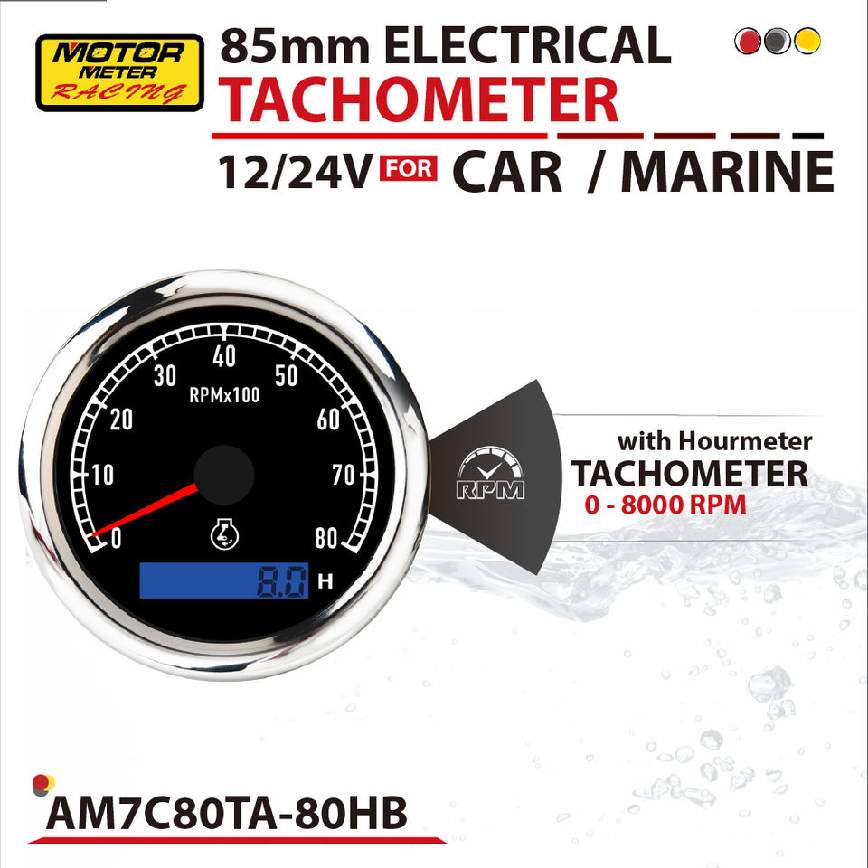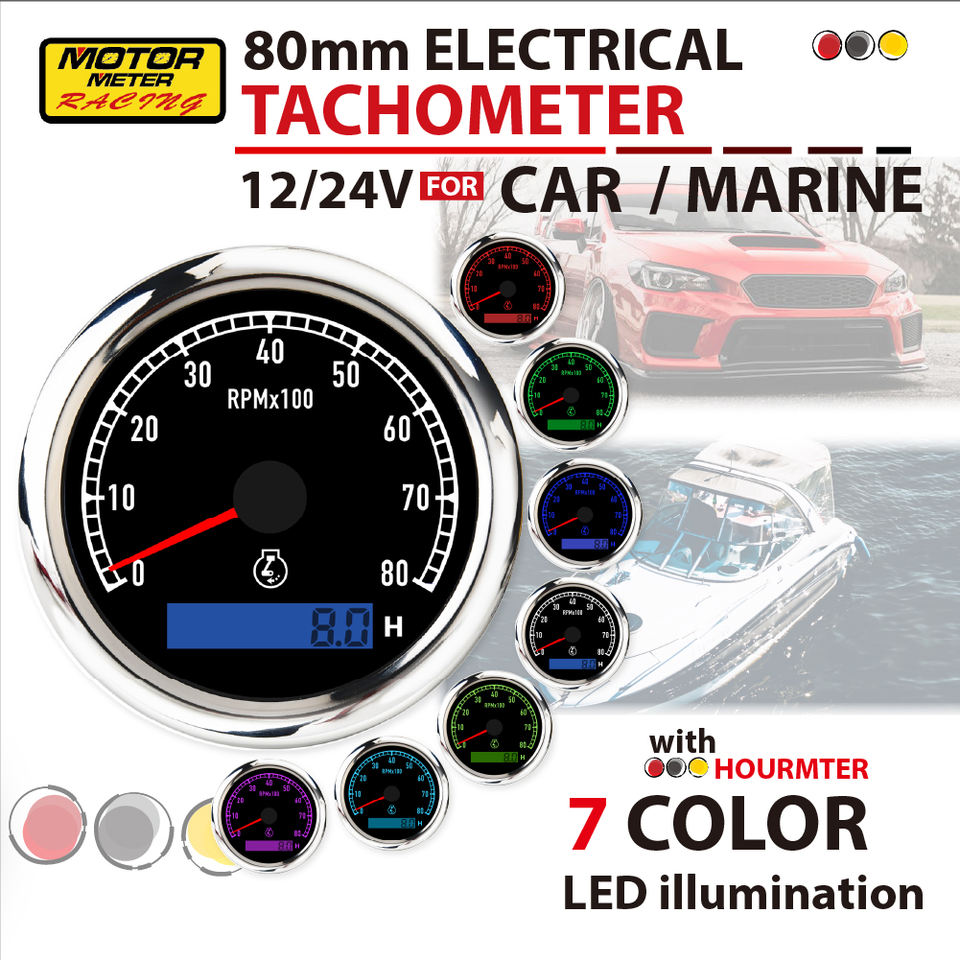 Nuevo Tacómetro de Carreras Motor Meter de 80mm, 8000 RPM, Horómetro LED de 7 Colores, Negro, 12V 24V, para Coche y Marino, Garantía de 12 Meses