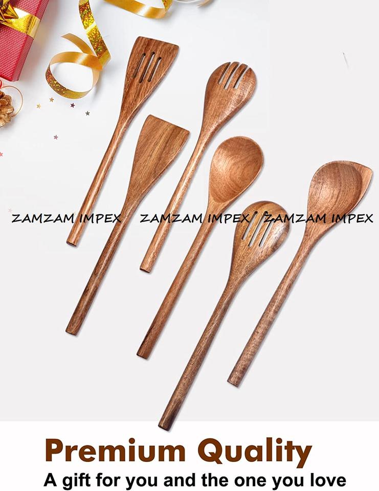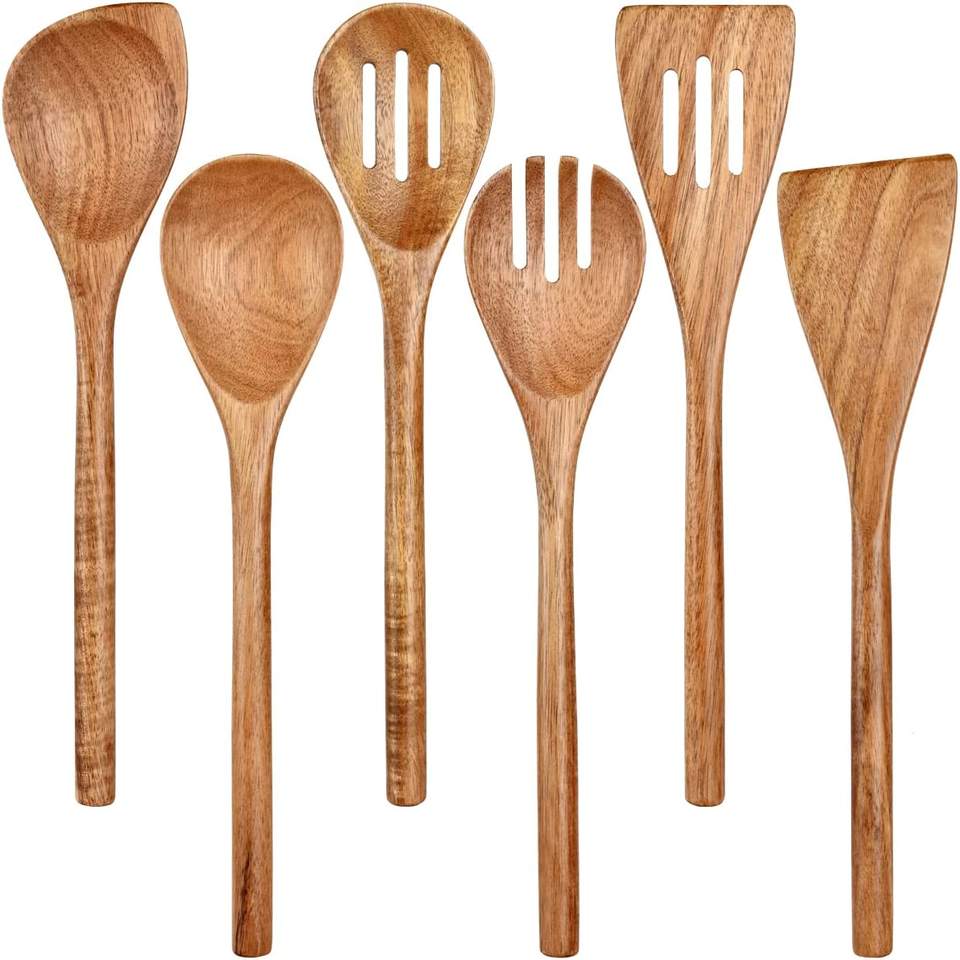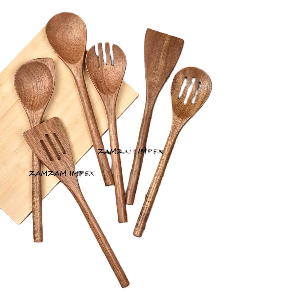 Juego de utensilios de cocina antiadherentes de madera de acacia, cuchara de esquina, espátula, tenedor, tornero, esencial para apartamento