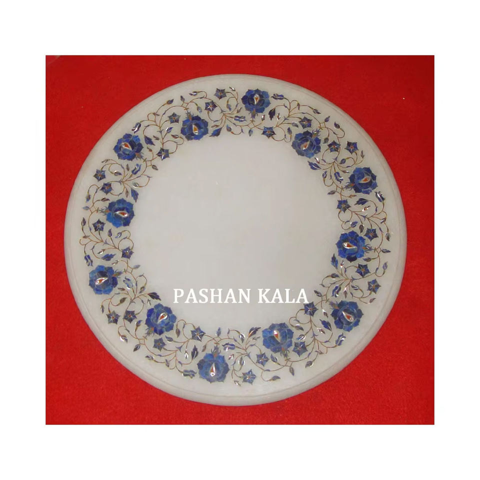 Nuevo diseño increíble, placa de forma redonda con incrustaciones florales de mármol blanco puro para el hogar y el restaurante, propósito decorativo al mejor precio bajo