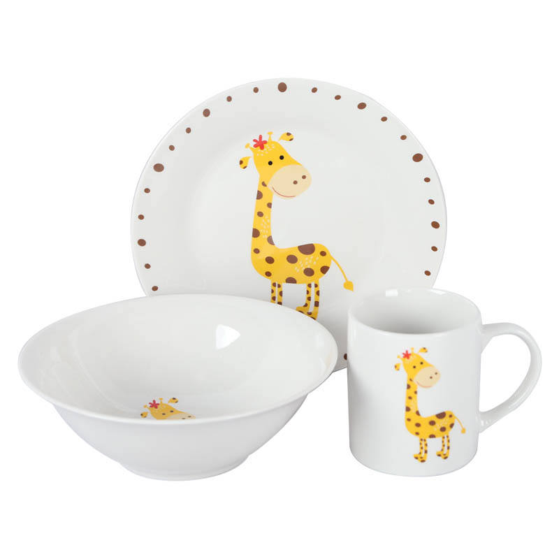 Juego de vajilla con diseño de animales para niños, vajilla de cerámica con dibujos animados