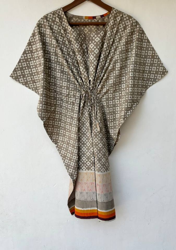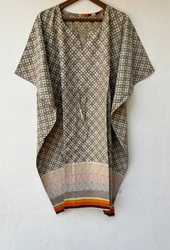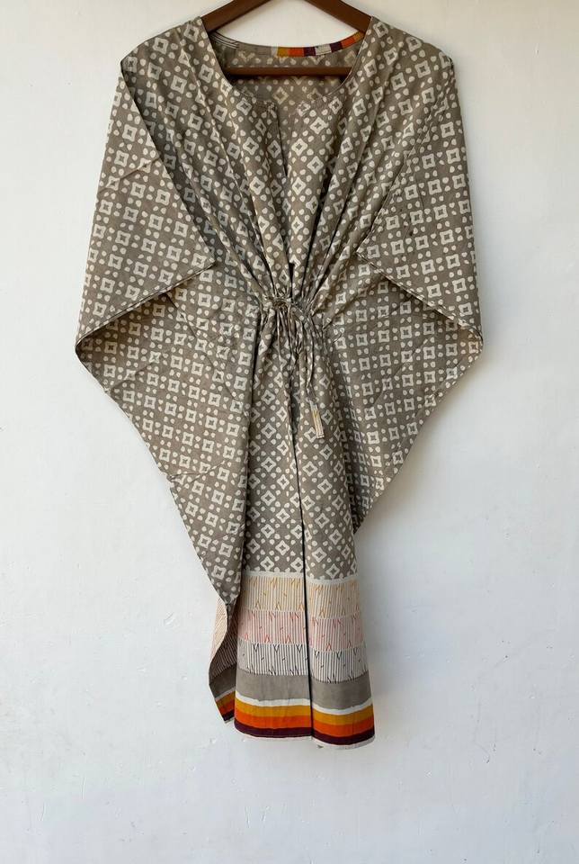 Nuevo Kaftán con Estampado Animal, Cuello en V, Cordón Ajustable, Estilo Flare, de Algodón Suave Indio, con Encaje, Largo, para Playa o Dama de Honor
