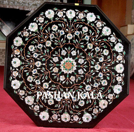 Nuevo diseño antiguo con el último producto de forma octogonal Acabado de alta calidad Mesa con incrustaciones de mármol blanco para Made In India