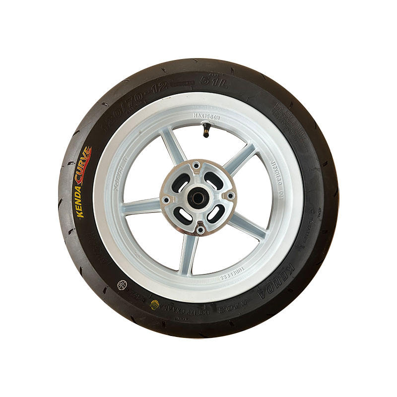 Nuevas llantas de aluminio para motocicleta de 12 pulgadas (delanteras y traseras) con neumáticos 110/70-12 120/70-12 (Kend* Blanco Termofusible)
