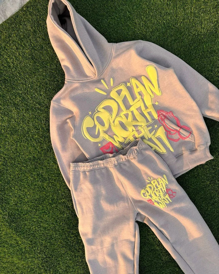 Nueva llegada de 2 piezas de peso pesado de invierno Jogger Set de calidad superior 400 Gsm tela transpirable de moda Puff Impresión logotipo personalizado