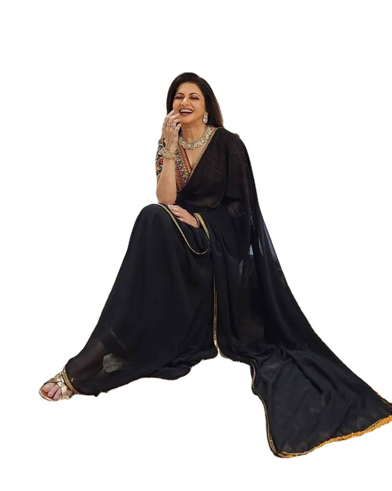 Nueva llegada 2024 hermosa fiesta boda festivo celebridad desgaste Sari liso con hilo pesado de diseñador y secuencia