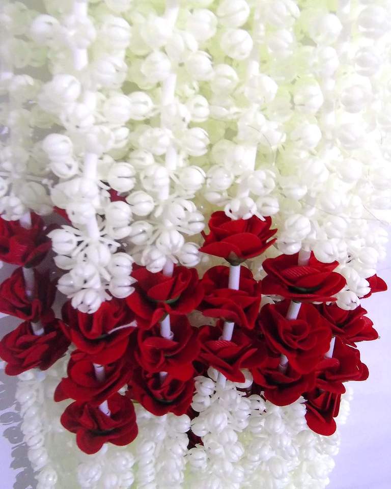 Mogra, Pioneer, rose, and pearl beadsMaterial