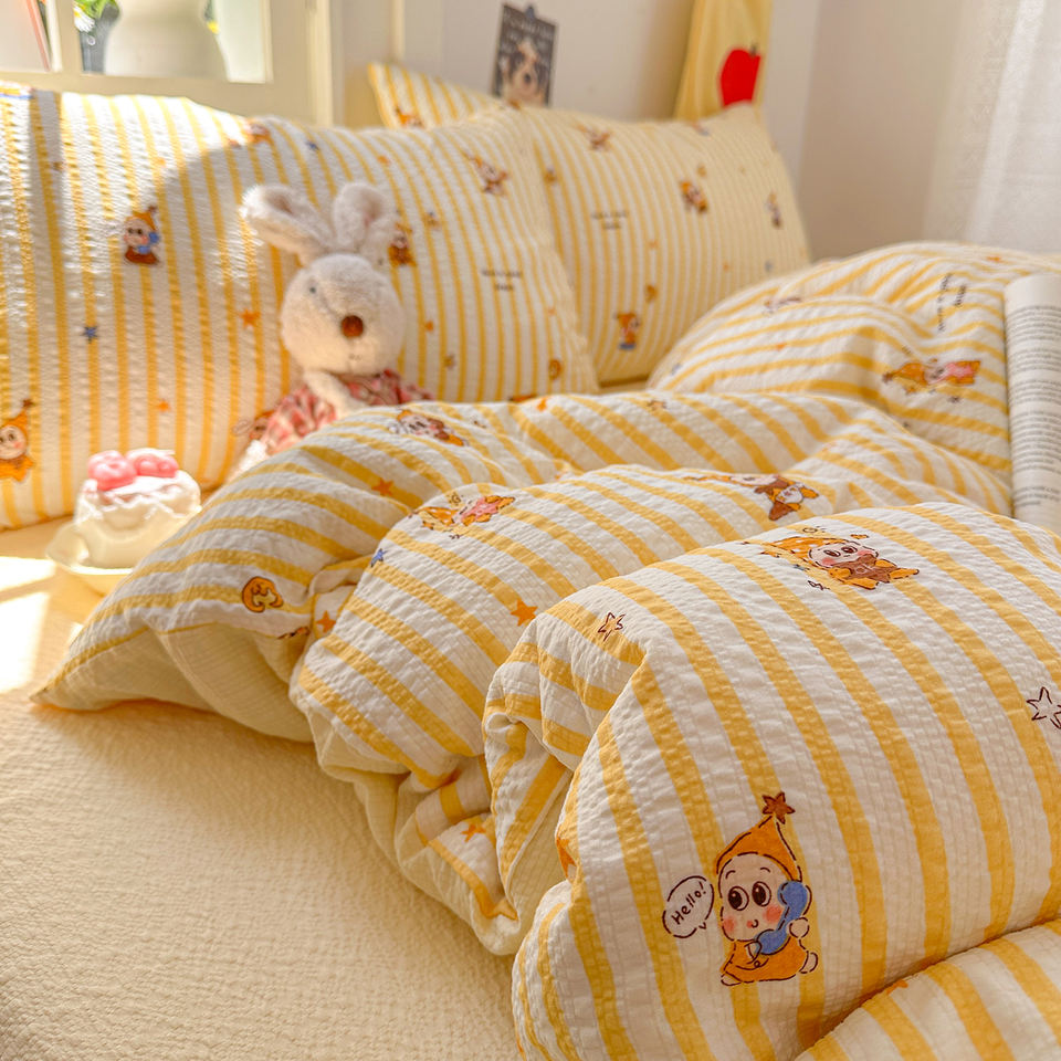 Nuevo Juego de Ropa de Cama de 4 Piezas con Estampado de Hilo Esponjoso, Estilo Fresco 2026, Suave, Esponjoso, Transpirable y Cómodo