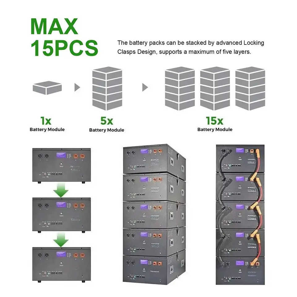 Nueva Batería de Litio Solar de 48V 300AH para Almacenamiento de Energía Doméstica, Protección IP65, Comunicación CAN, Híbrida, 15KW 10KW 20KW BMS