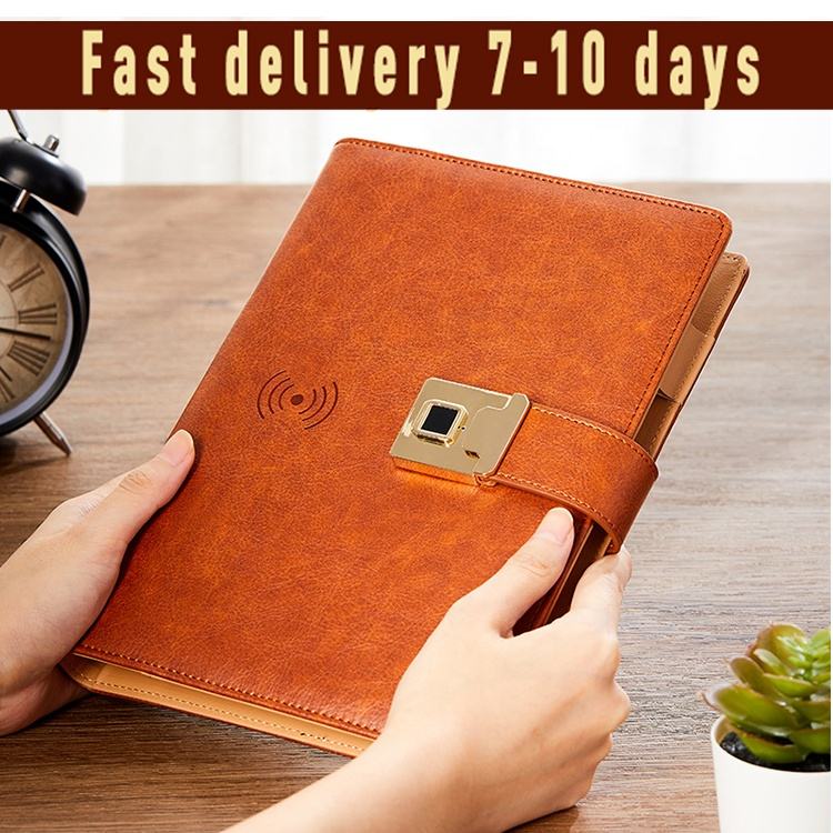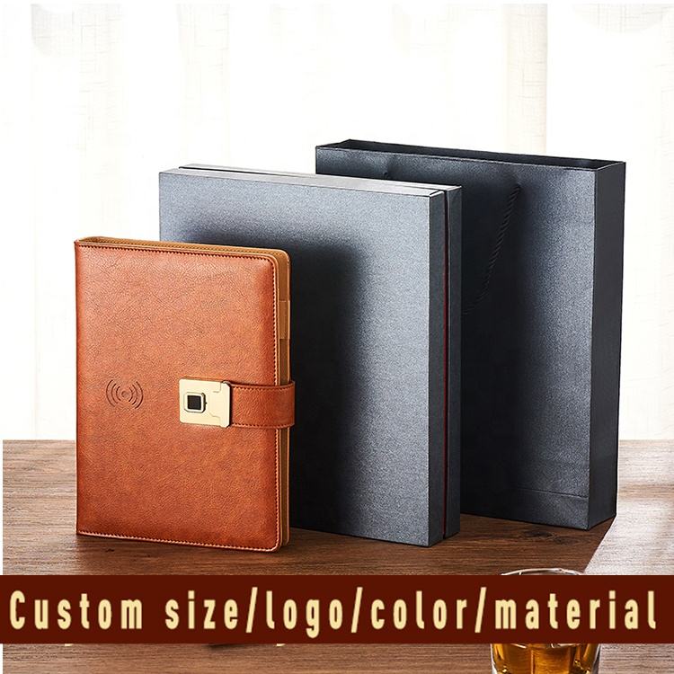 Nueva llegada A5 multifunción Oficina Notebook cargador inalámbrico huella digital bloqueo Agenda 3 cables Powerbank para Apple Android tipo C