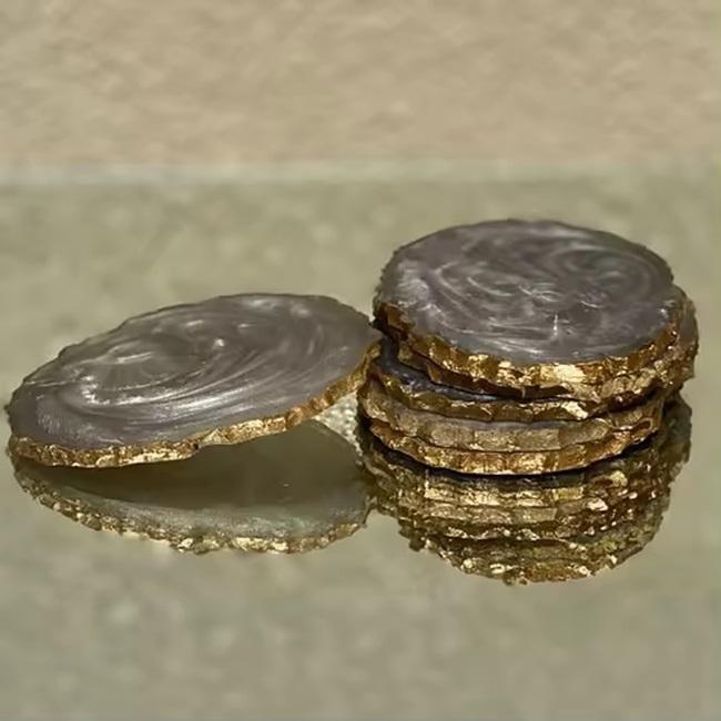 Decoración de mesa moderna hecha a mano para el hogar, juego de posavasos y posavasos de resina gris, posavasos con diseño de piedra epoxi con aspecto de ágata