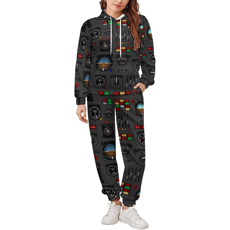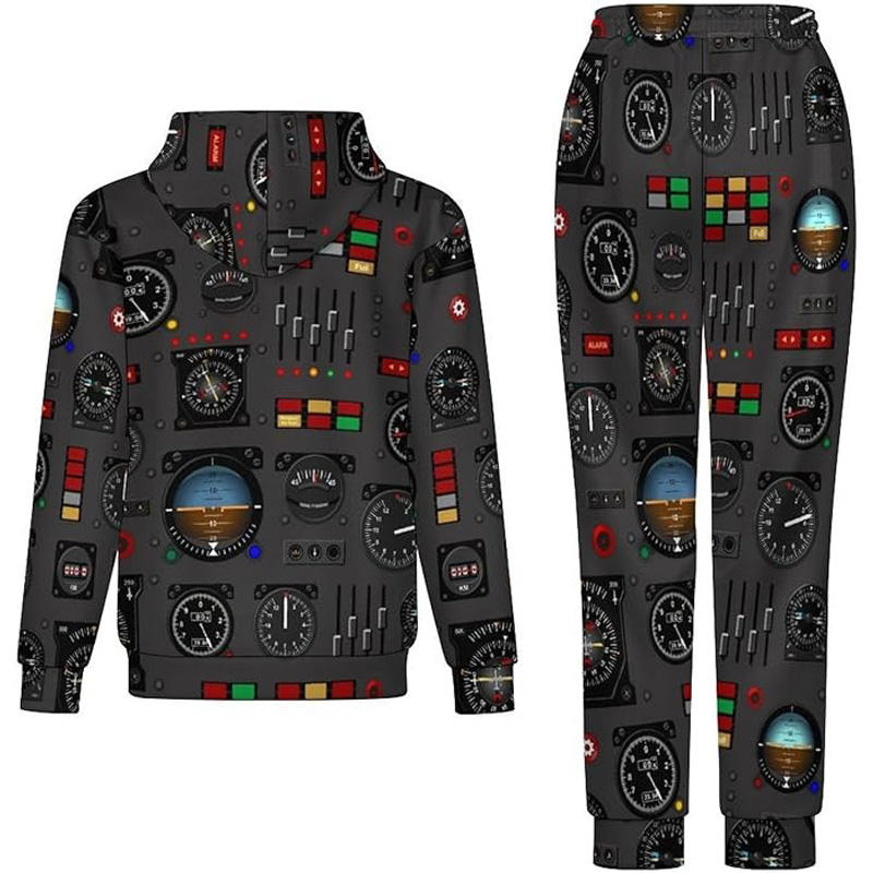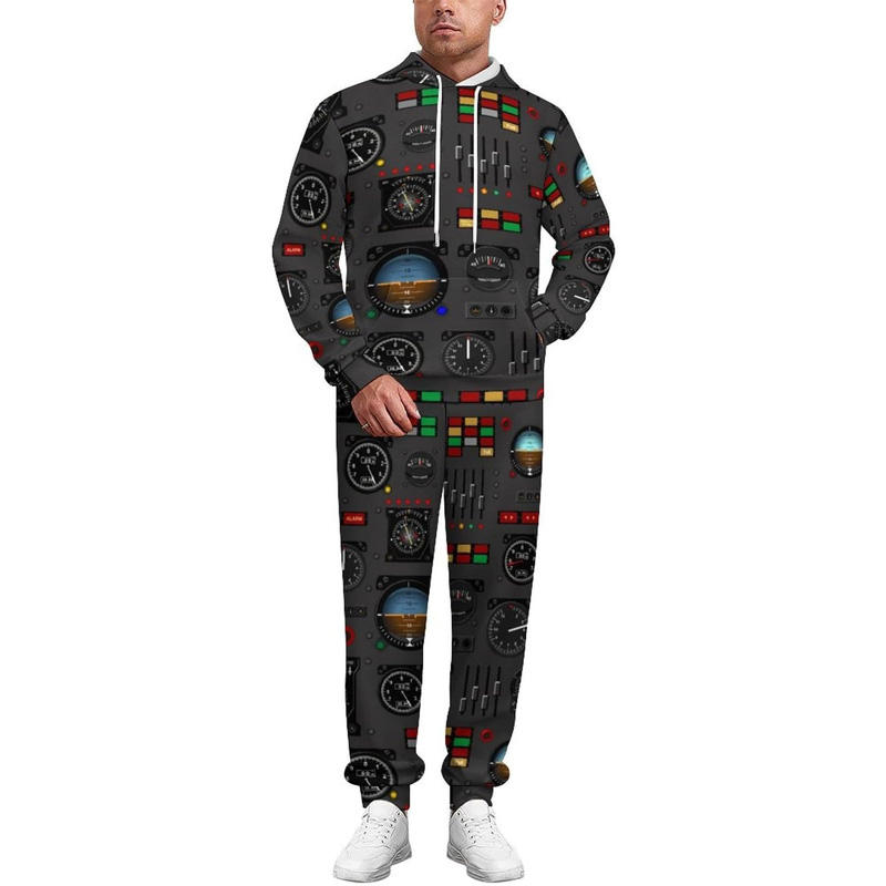 Nueva llegada Panel de instrumentos de avión Conjuntos de pijama de 2 piezas para hombres Sudadera con capucha de manga larga y pantalones Ropa de dormir Chándal estampado