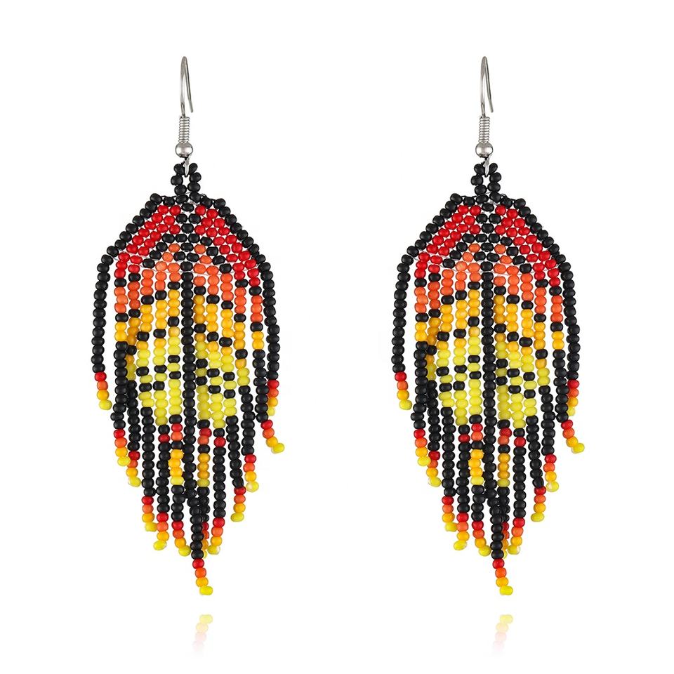Pendientes de cuentas de semillas Miyuki tejidos hechos a mano con patrón de hoja de arce degradado de joyería Bohemia
