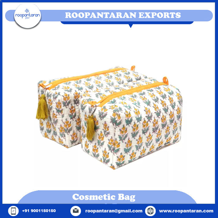 Recién llegado, neceser con estampado de bloque de mano abierto azul Bossanova, monedero, bolsa de cosméticos, juego de dos bolsas al precio más bajo