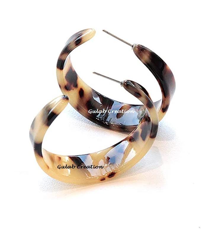Pendientes de aro de resina de concha de tortuga de leopardo en forma de C diseño de tuerca geométrica joyería de declaración de acrílico ligero para mujer