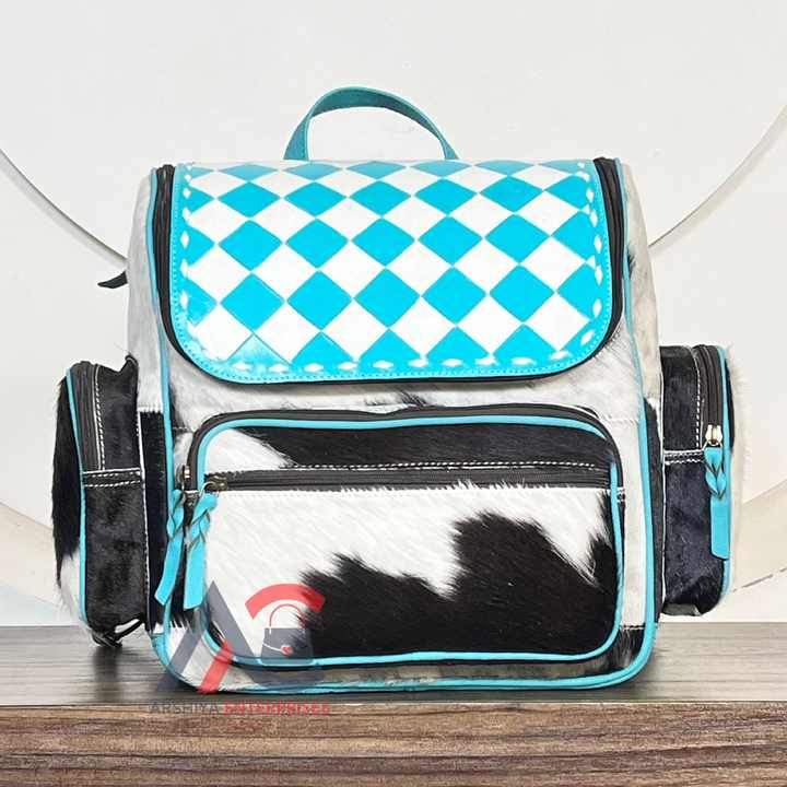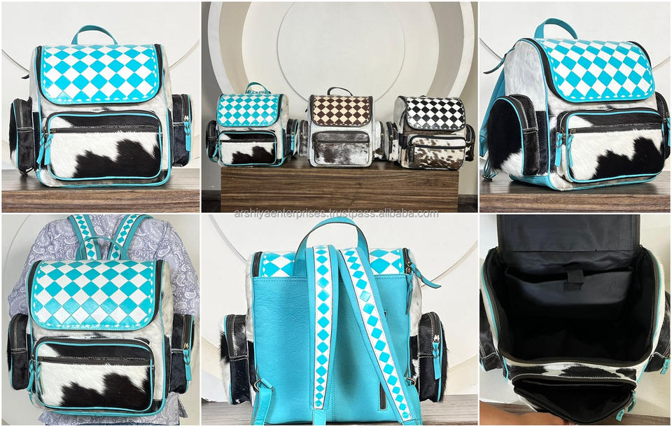 Nueva Mochila de Cuero Vacuno Genuino con Patrón a Cuadros, Estilo Occidental, Bolsa de Almacenamiento Perfecta para Pañales, Unisex