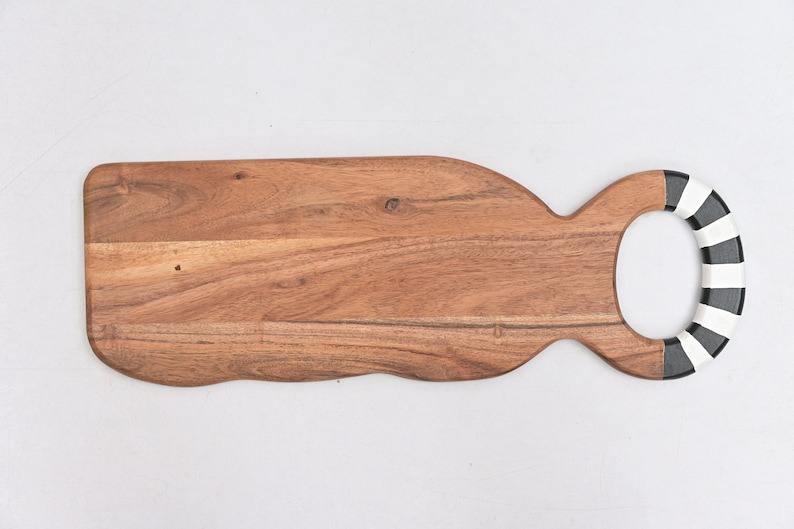 Tabla de Quesos con Diseño Único Hecho a Mano y Mango, Tabla de Cortar de Madera de Teca y Resina Epoxi con Diseño de Olas del Océano