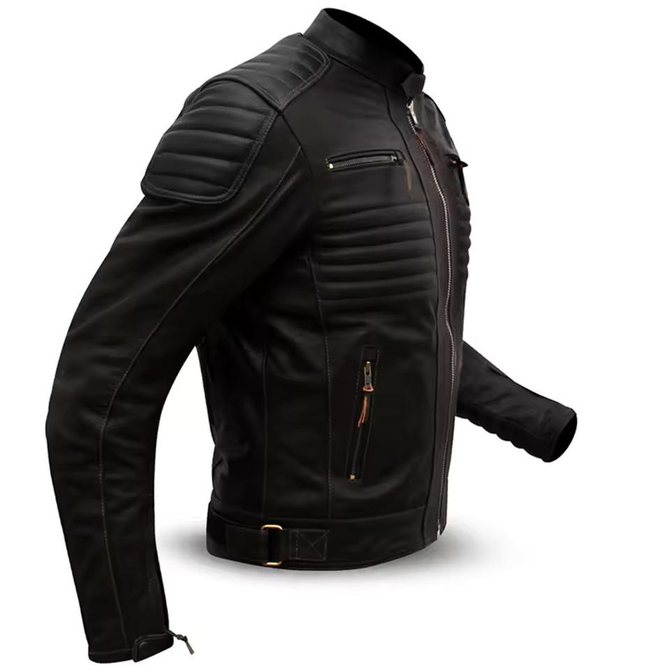 Chaqueta de Motociclista de Cuero Genuino con Cuello Alto Recubierto, Estilo Vintage, Transpirable, para Hombre, para Conducir y Competir