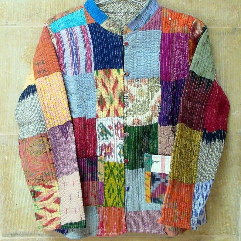 Chaqueta acolchada de algodón con estampado Kantha hecha a mano de retazos de algodón para mujer, chaqueta acolchada larga de algodón