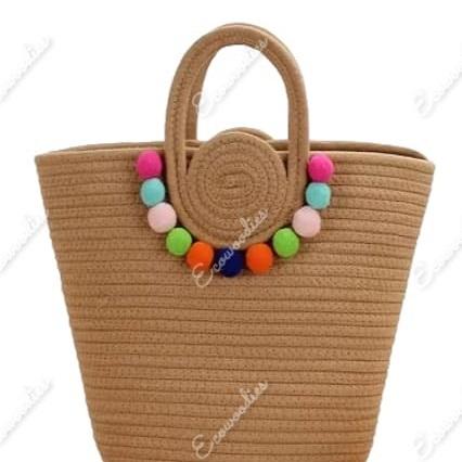 Bolsos hechos a mano de cuerda de algodón para mujer, bolso de mimbre tejido a mano para playa y vacaciones