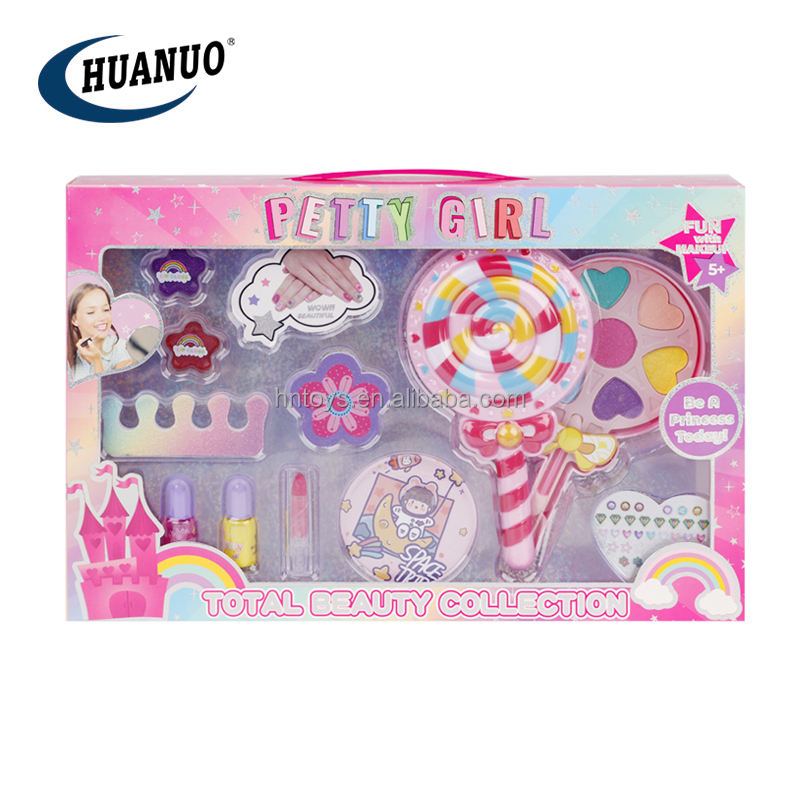 Recién llegado, caja para manualidades doblada en cuartos, Kits de maquillaje no tóxicos, juguetes de maquillaje de belleza, juego de juguetes cosméticos para niños de princesa
