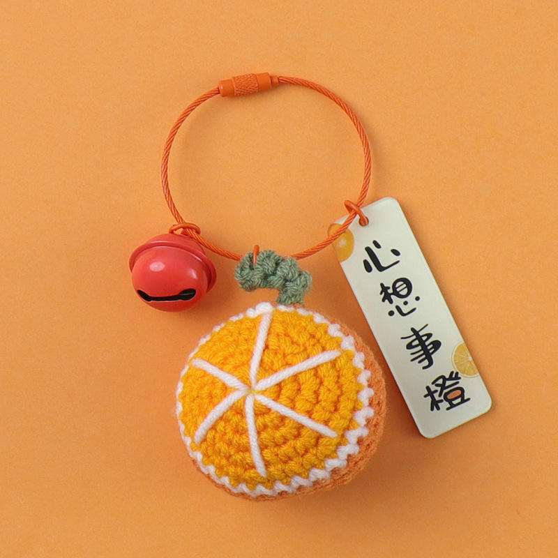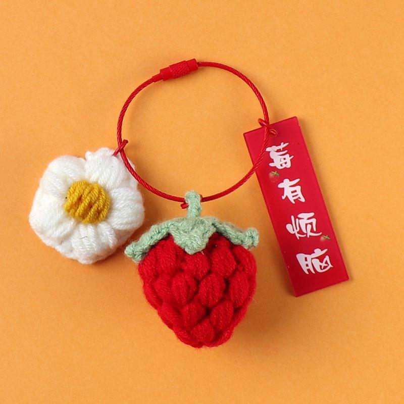 Nueva llegada creativo hecho a mano de lana de punto de ganchillo llavero de caqui cosas buenas suceden hilo colgante cacahuete pequeño regalo encanto