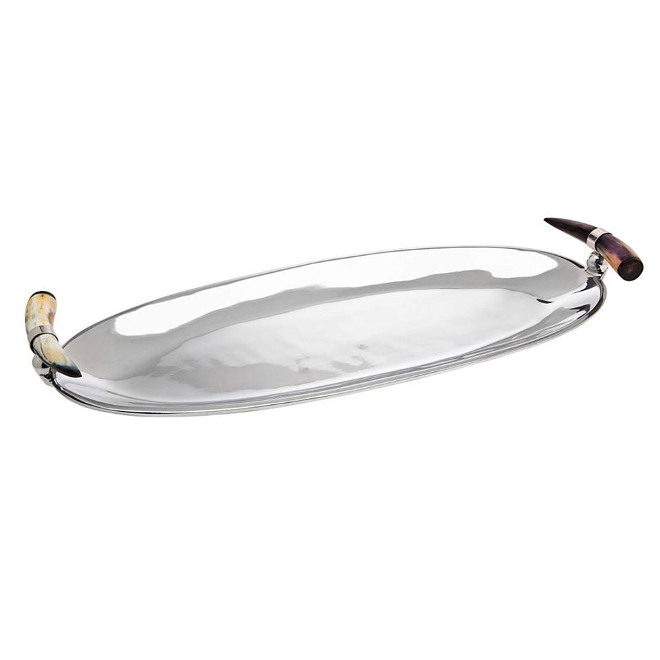 Bandeja para servir comida de acero inoxidable personalizada hecha a mano de la mejor calidad y alta demanda con mango de cuerno