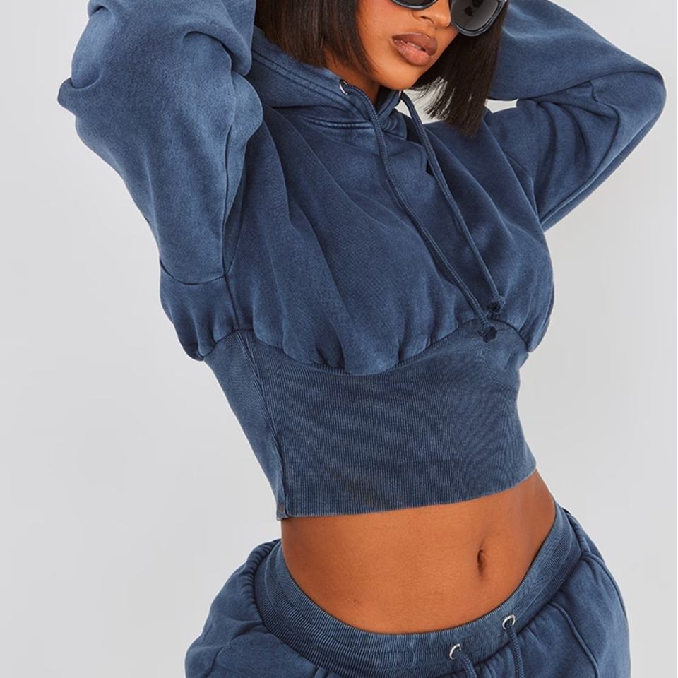 Nuevo Conjunto Deportivo de Dos Piezas para Mujer, Sudadera Corta Holgada con Hombros Caídos y Pantalones Jogger de Cintura Baja, con Logotipo Personalizado de Alta Calidad