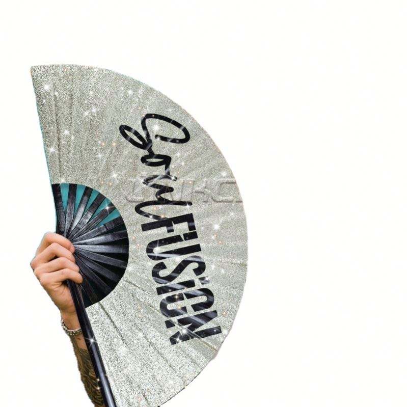 Nuevo Abanico Plegable Grande de Bambú con Logotipo Personalizado, Portátil, para Baile, Regalo para Festivales, Técnica Pintada