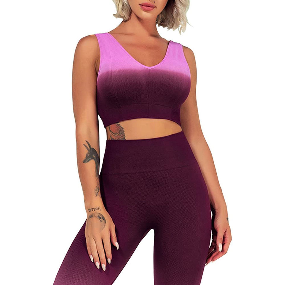 Nuevo Conjunto de Yoga y Ejercicio Personalizado de Tallas Grandes para Mujer, Estilo Único en la Parte Delantera, Ajuste Cómodo, Color Sólido, 2 Piezas, Cintura Alta