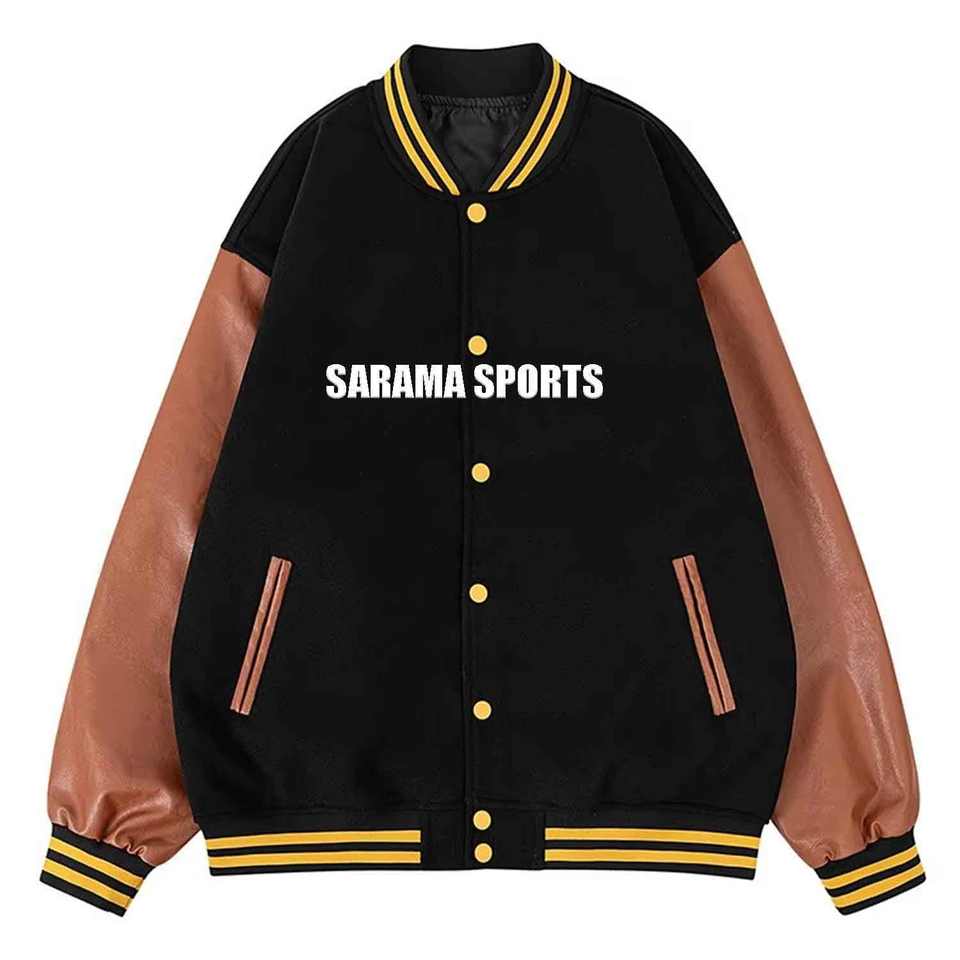 Chaqueta Universitaria Personalizada de Nueva Llegada para Hombre, Chaqueta con Cuello Alto, Mangas de Cuero y Bolsillos a Precio de Mayoreo