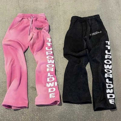 Novedad: Pantalones de chándal acampanados personalizados para hombre, joggers gruesos con efecto apilado, estampado en relieve y detalles desgastados.