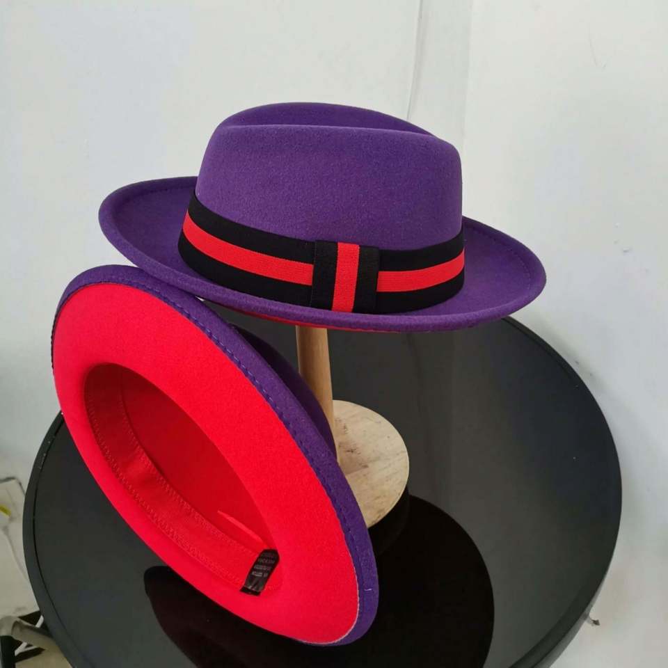 Nuevo Sombrero Fedora Rojo de Dos Tonos Personalizado, Sombrero Trilby de Ala Corta con Borde Levantado para Hombre, Ideal para Fiestas