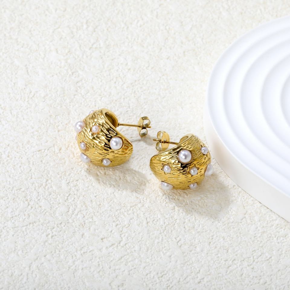 Pendientes de Perlas con Incrustaciones en Forma de Gota de Agua, de Acero Inoxidable, Chapados en Oro de 18k, Modernos y Personalizables, para Mujer