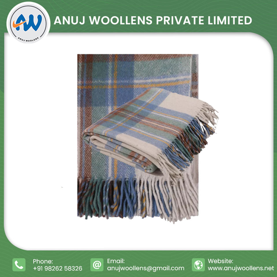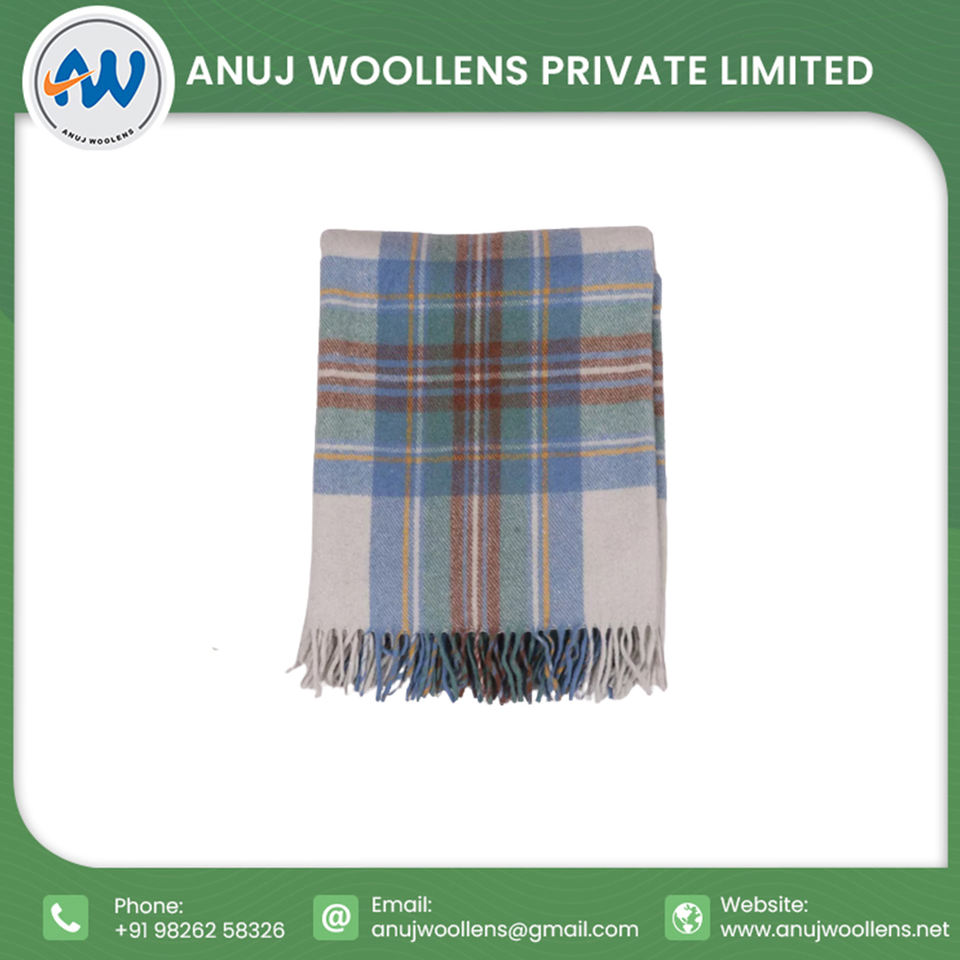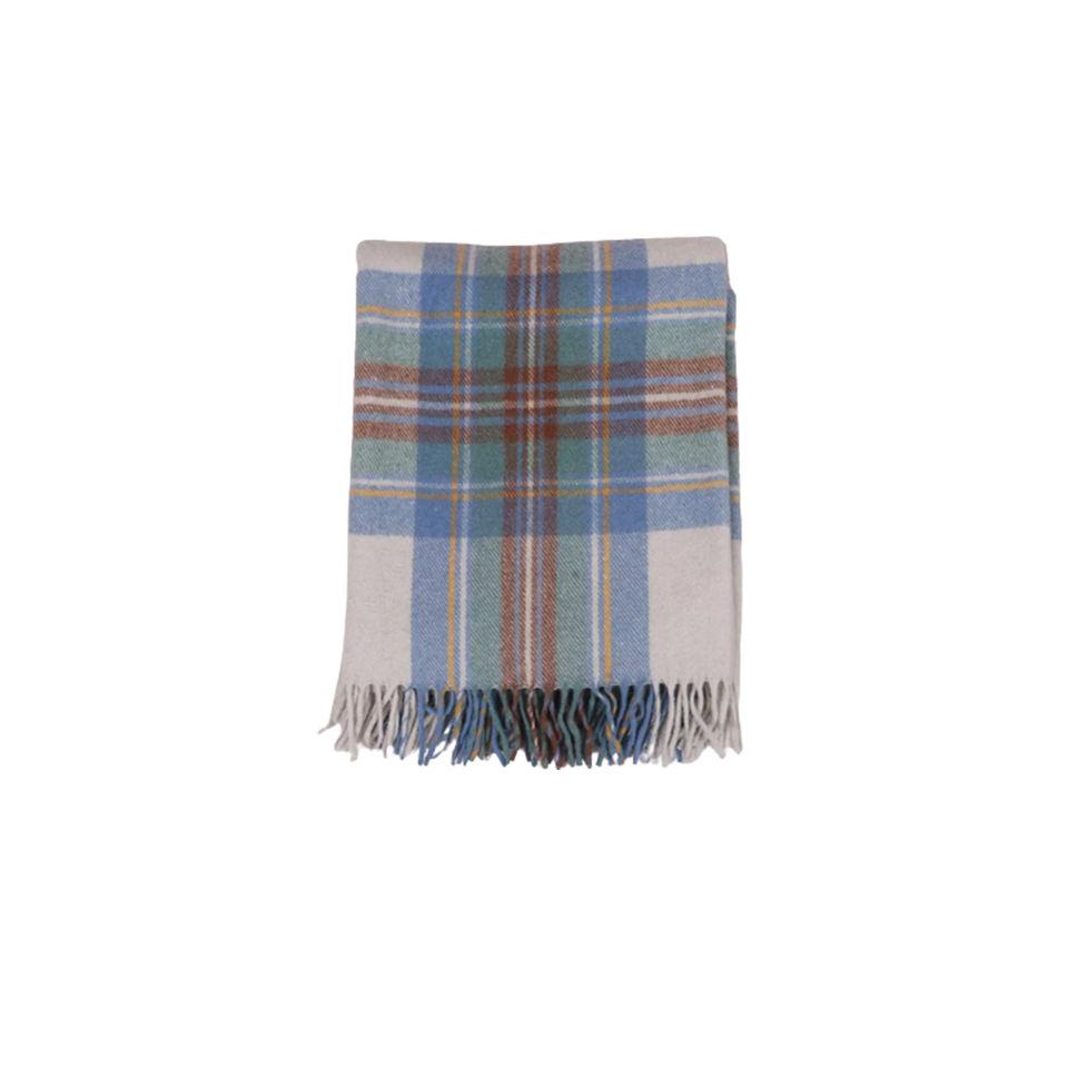 Recién llegado, diseño personalizado, suave Stewart, manta de lana azul silenciada, manta de tartán de lana reciclada