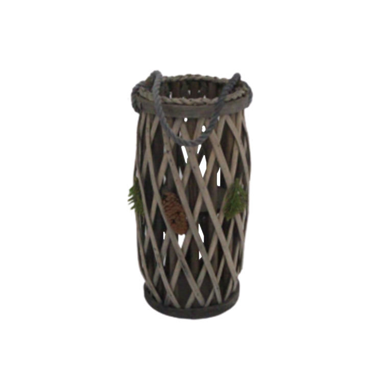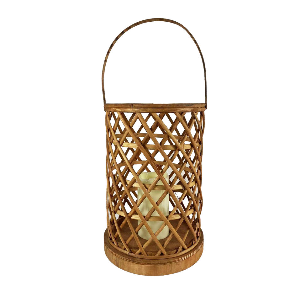 Nueva llegada linterna cónica de ratán hecha a mano personalizada con mango e inserto de vidrio portavelas natural con pantalla de vidrio