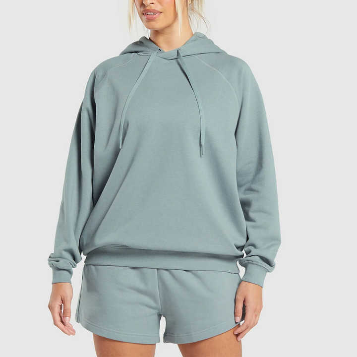 Nueva llegada logotipo personalizado colores invierno sólido mujer Sudadera con capucha de dos piezas y pantalones cortos conjunto ropa casual para adultos