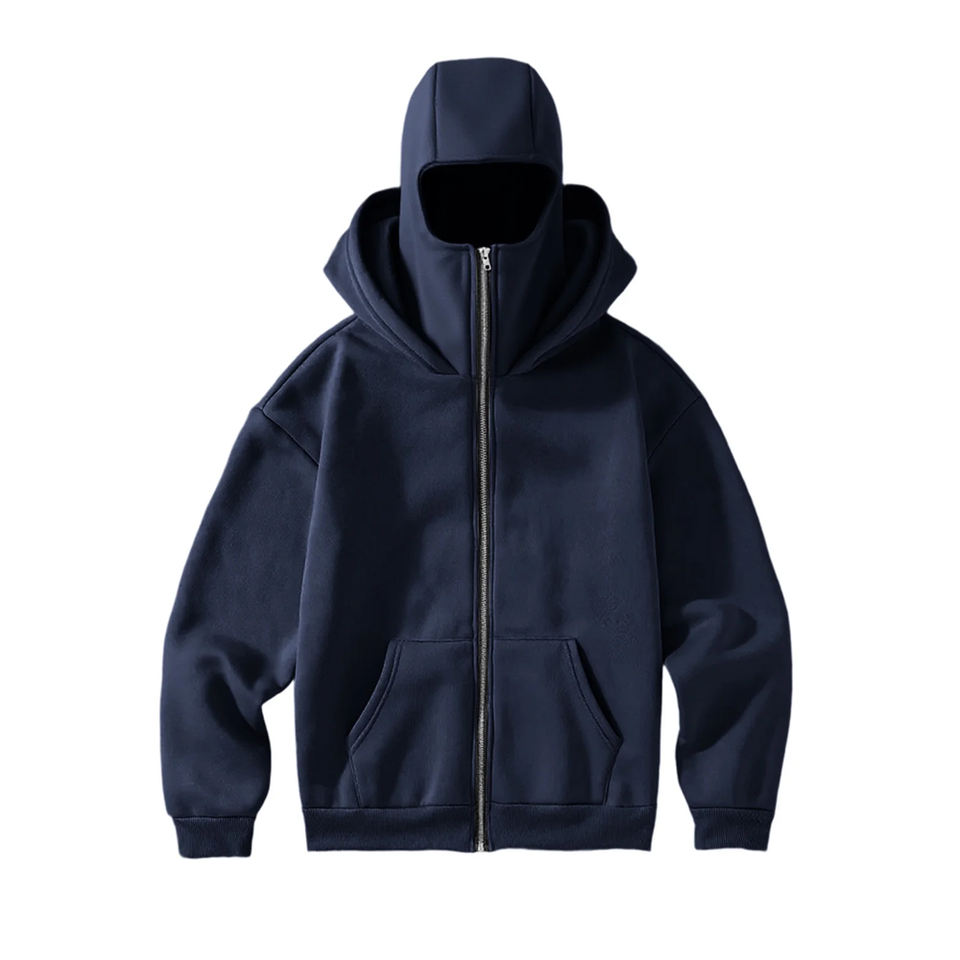 Nueva llegada: Sudadera con capucha de algodón 100% de forro polar, estilo ninja doble, con cremallera, peso pesado, máscara facial completa personalizada para hombre