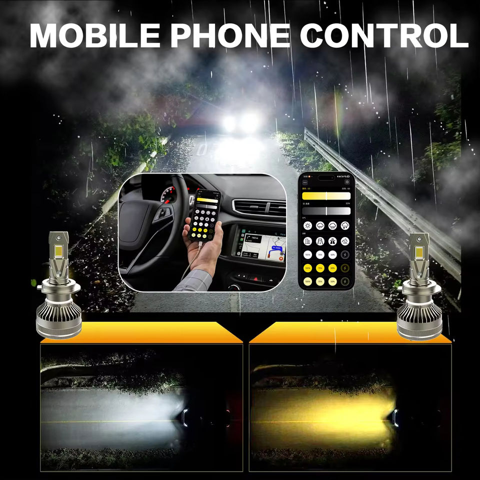 Nueva llegada personalizada Super brillante Hi/ Low Beam 140W colores duales 3000K 6000K Flash App Control H4 Led faros bombilla para coche