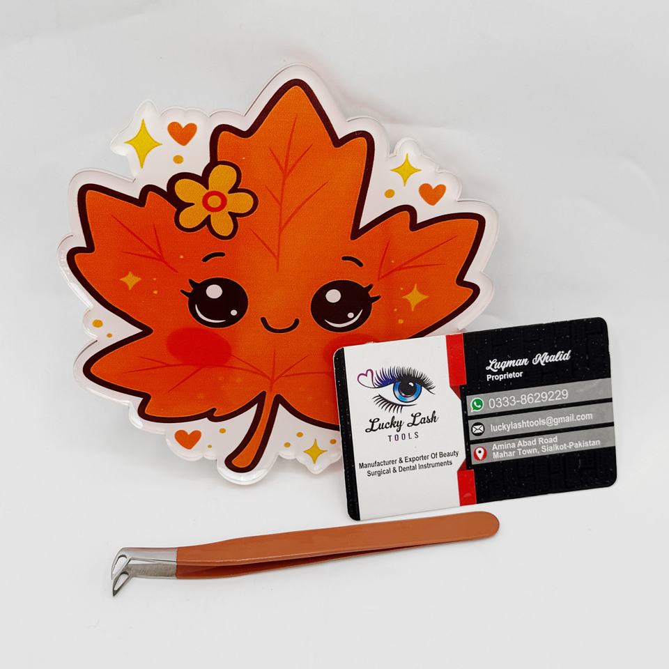 Azulejos de pestañas acrílicas con hojas de otoño, organizador de azulejos de pestañas, superficie lisa ligera, corte láser, azulejos personalizables