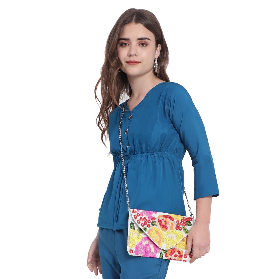 Beaded Clutch Purse Bag with bamboo handle