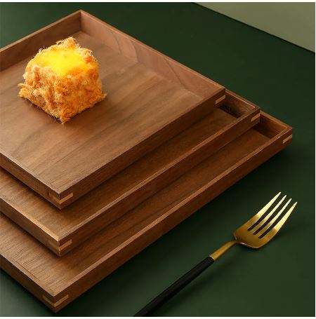 Nueva llegada Bandeja de madera de diseño Bandeja de servicio de forma rectangular con calidad superior para proveedores de restaurantes de hoteles