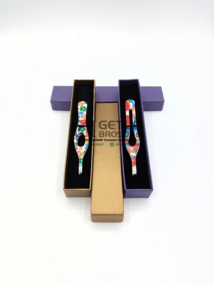 Pinzas para cejas de acero inoxidable con revestimiento de papel de diferentes diseños con logotipo personalizado, herramientas de belleza para embalaje