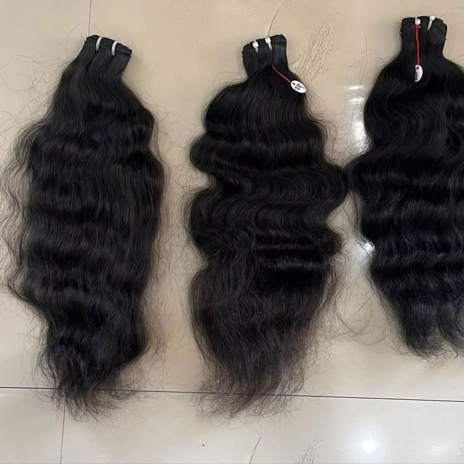 Recién llegado, paquetes de cabello humano Remy de doble trama, 20-30 pulgadas, máquina ondulada corporal, cutícula alineada, sensación suave, crudo para exportadores indios