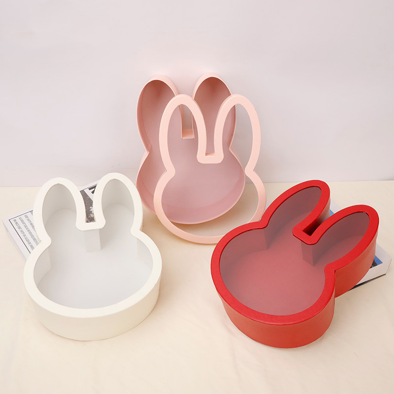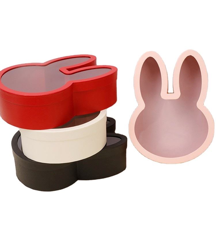Nueva llegada forma de conejo de Pascua cubierta de acrílico transparente flor regalo embalaje cajas de papel