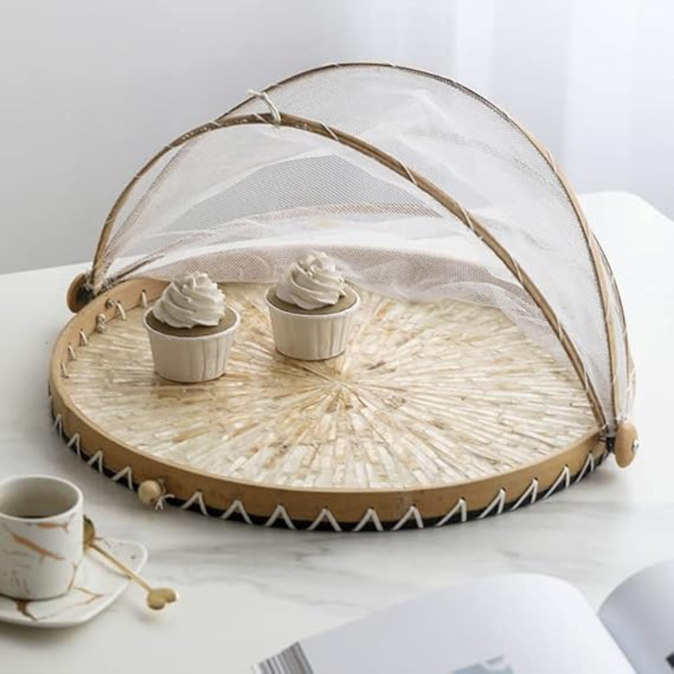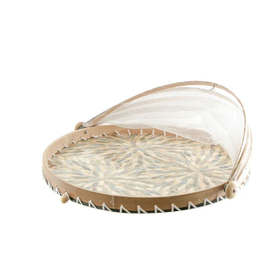 Nombre del producto:Madre de Pearl inlay Seagrass bandeja con cubierta de comida de lino