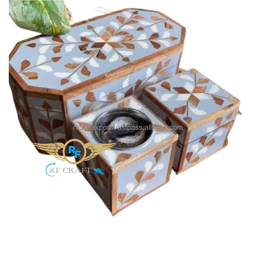 Nueva llegada bandeja de semillas eléctrica caja quemador conjunto decoración del hogar madera madre de perla incrustaciones fregona árabe Mubkhar regalo de Ramadán