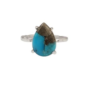 Nombre del producto:Anillo texturizado natural de la plata esterlina de la pirita y de la turquesa