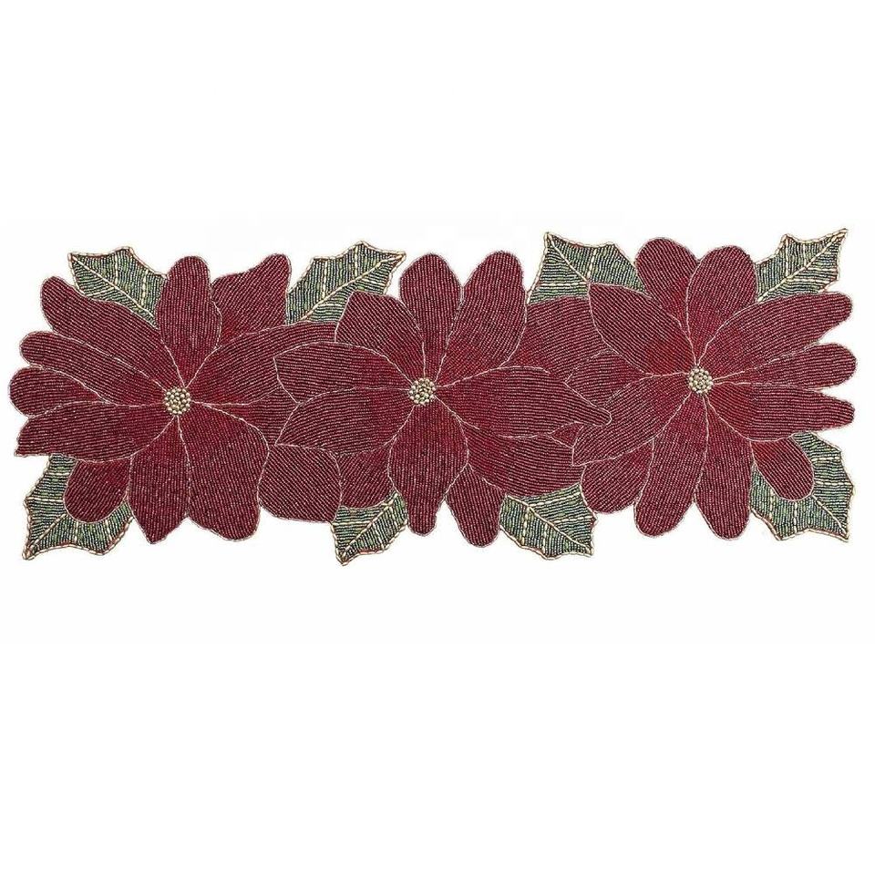 Camino de mesa con cuentas de cristal con patrón Floral, camino de mesa decorativo brillante para el hogar, Hotel, boda, decoración de mesa de comedor