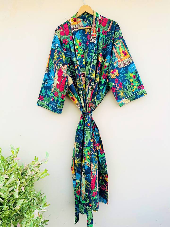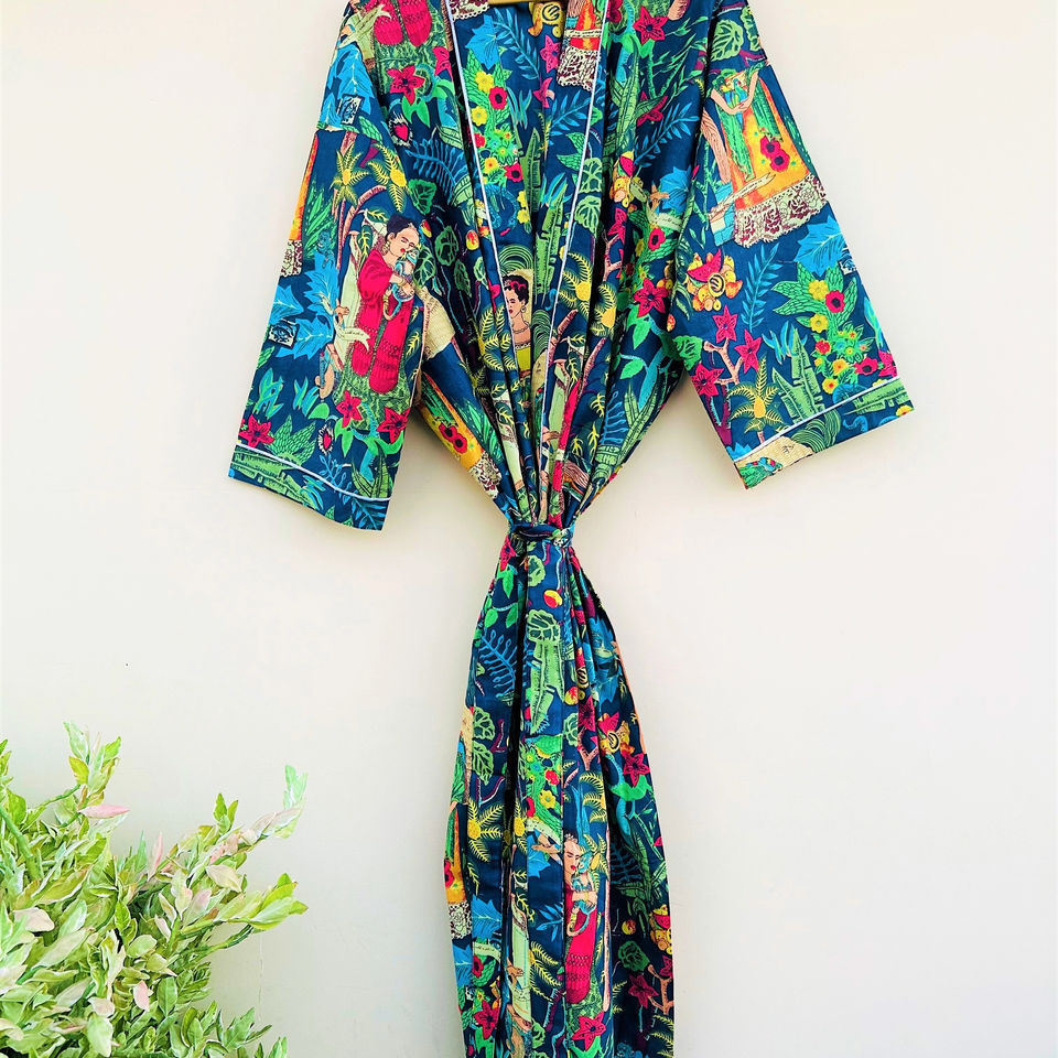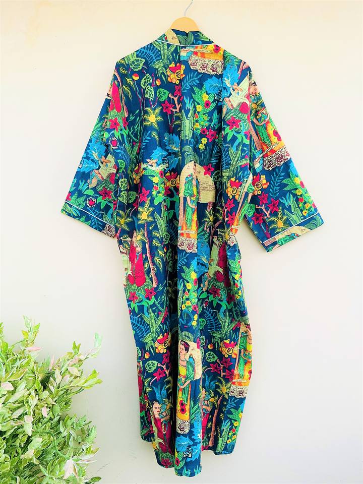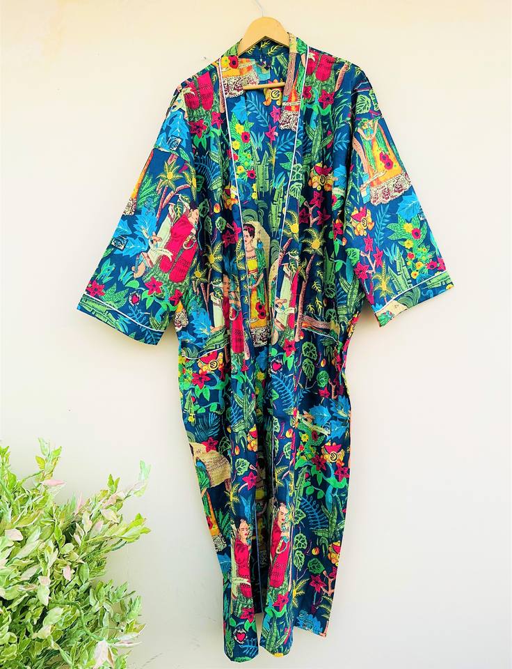 Kimono de algodón hecho a mano de diseñador con estampado Floral para mujer