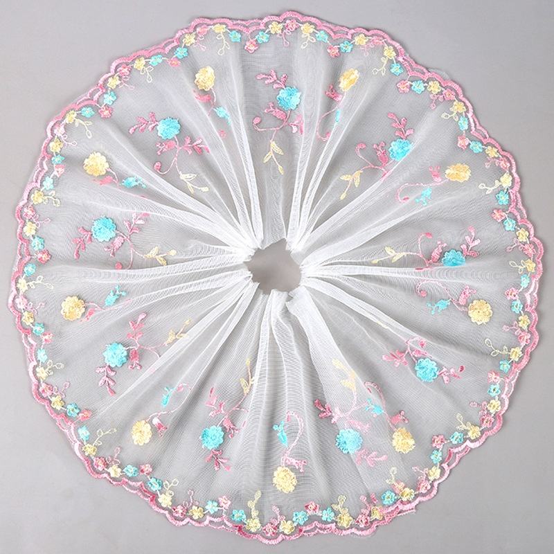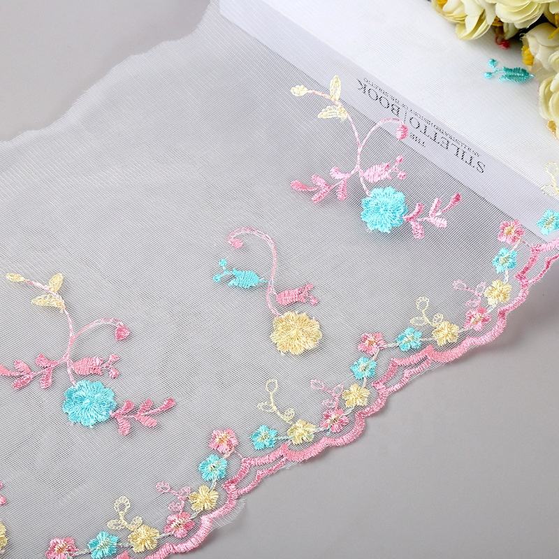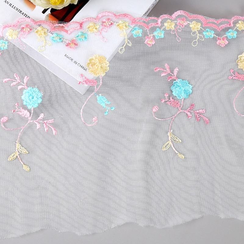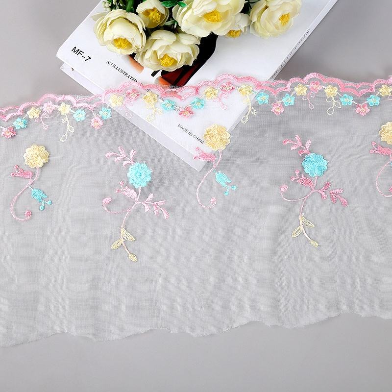 Nuevo Encaje de Malla con Bordado de Hilo Rosa Fresco y Flores Pequeñas para Vestidos y Textiles del Hogar, Ribete de Encaje de 21 cm